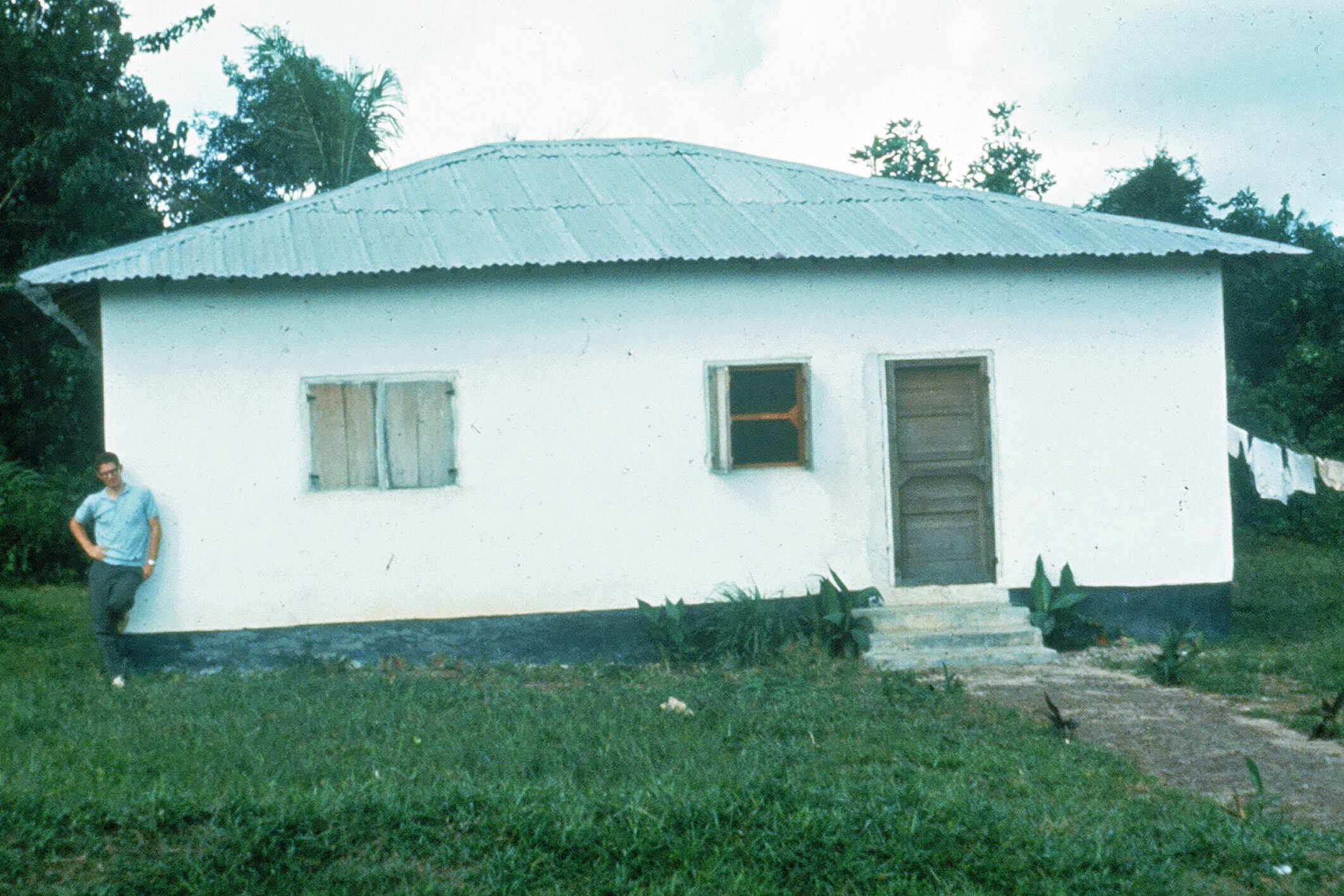 Our first home in Gbarnga Liberia, West Africa. This photo of me standing in front of the house was taken in the fall of 1965.